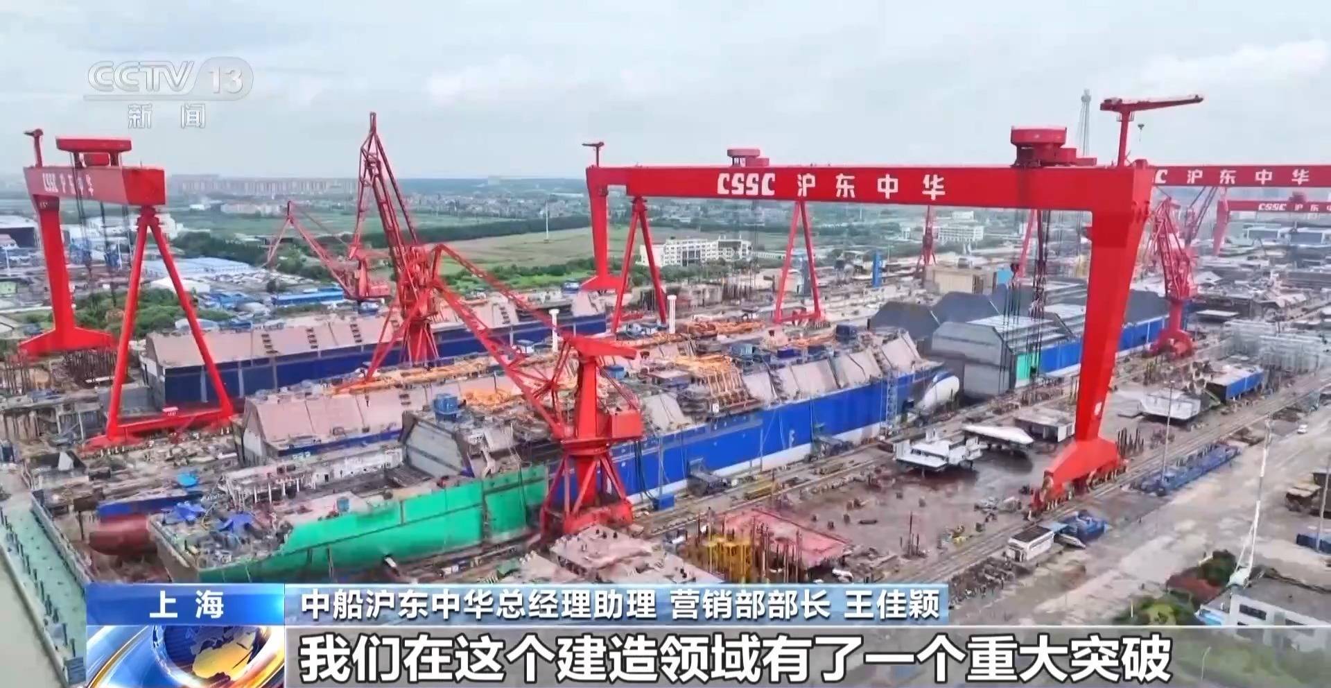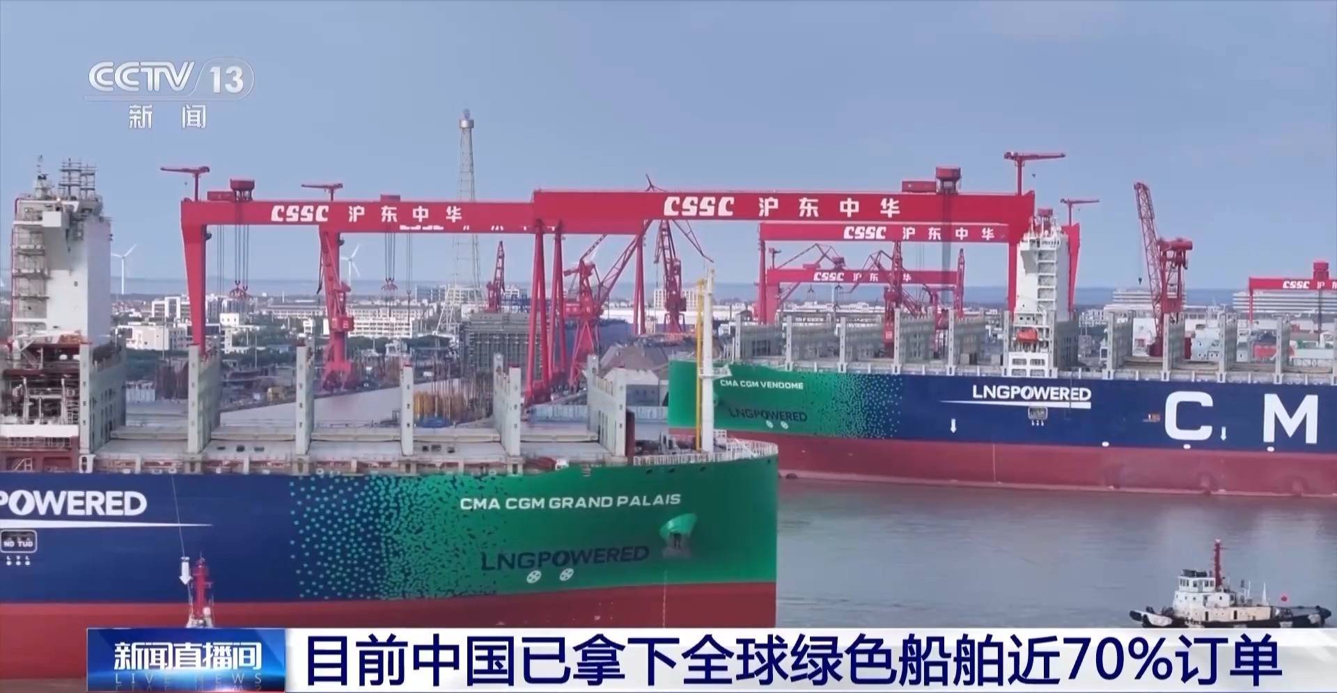 r在中船沪东中华造船厂,记者看到,今年这家船企接到的绿色船舶订单占比已经超过80%,是近5年最高水平。船型覆盖集装箱船、LNG运输船等主力船型,燃料也从液化天然气拓展到了甲醇、液氢等,高端化、绿色化已经成为中国造船的新名片。